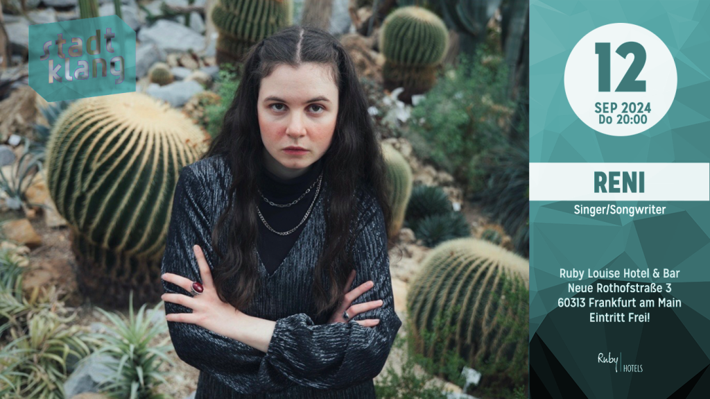 Reni ist Singer-Songwriterin aus Frankfurt am Main. Mit ihren deutschsprachigen, unvorhersehbaren Texten fesselt sie ihr Publikum und lässt dieses durch ihre feingeistige Bildsprache tief in ihre Gefühlswelt blicken.